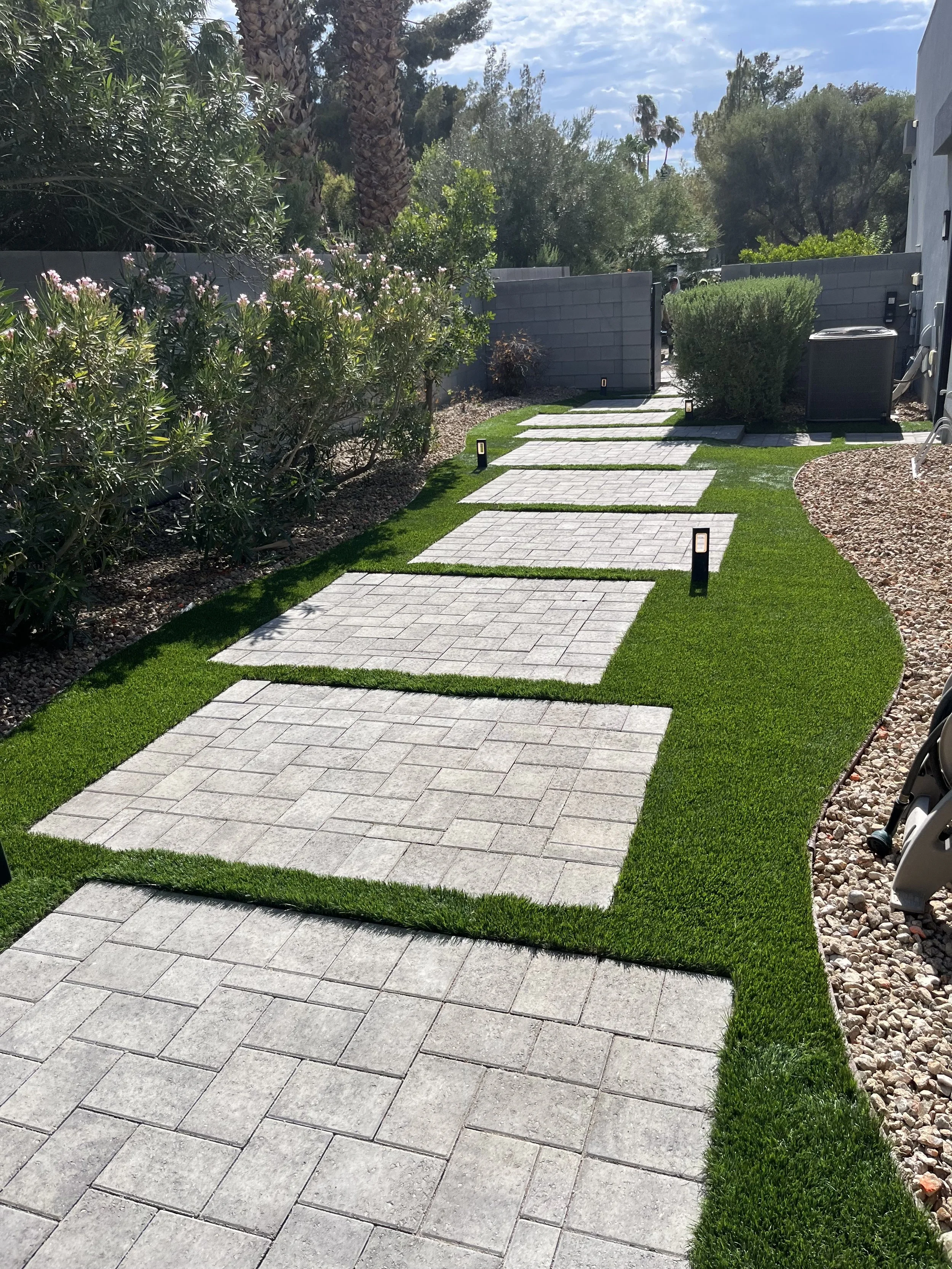Whether you’re looking to add appeal to your patio, or contemporary flare to your walkway, Fil-Am Landscaping offers various pavers, including pavers with the look and feel of brick and stone. We can help you create a stylish walkway, patio, or driveway. Our pavers come in many shapes, styles, and tones to help you add charm and personality to transform your outdoor living area. We take pride in the details of your paver project throughout Las Vegas and the surrounding areas of Summerlin, Spring Valley, Henderson, and Paradise, NV.